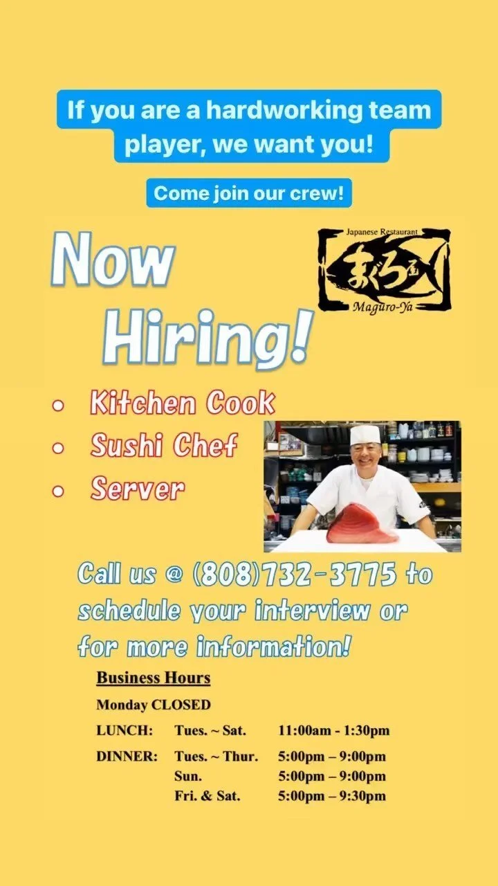 Please give us a call to ensure that we have open tables or seats available at the sushi bar prior to your arrival.